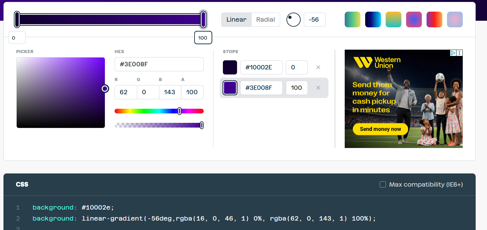 Pour tous les dégradés (sur le header, le fond des images et les descriptions dans la page d’accueil), j’ai utilisé CSS Gradient pour pouvoir générer les valeurs plus facilement