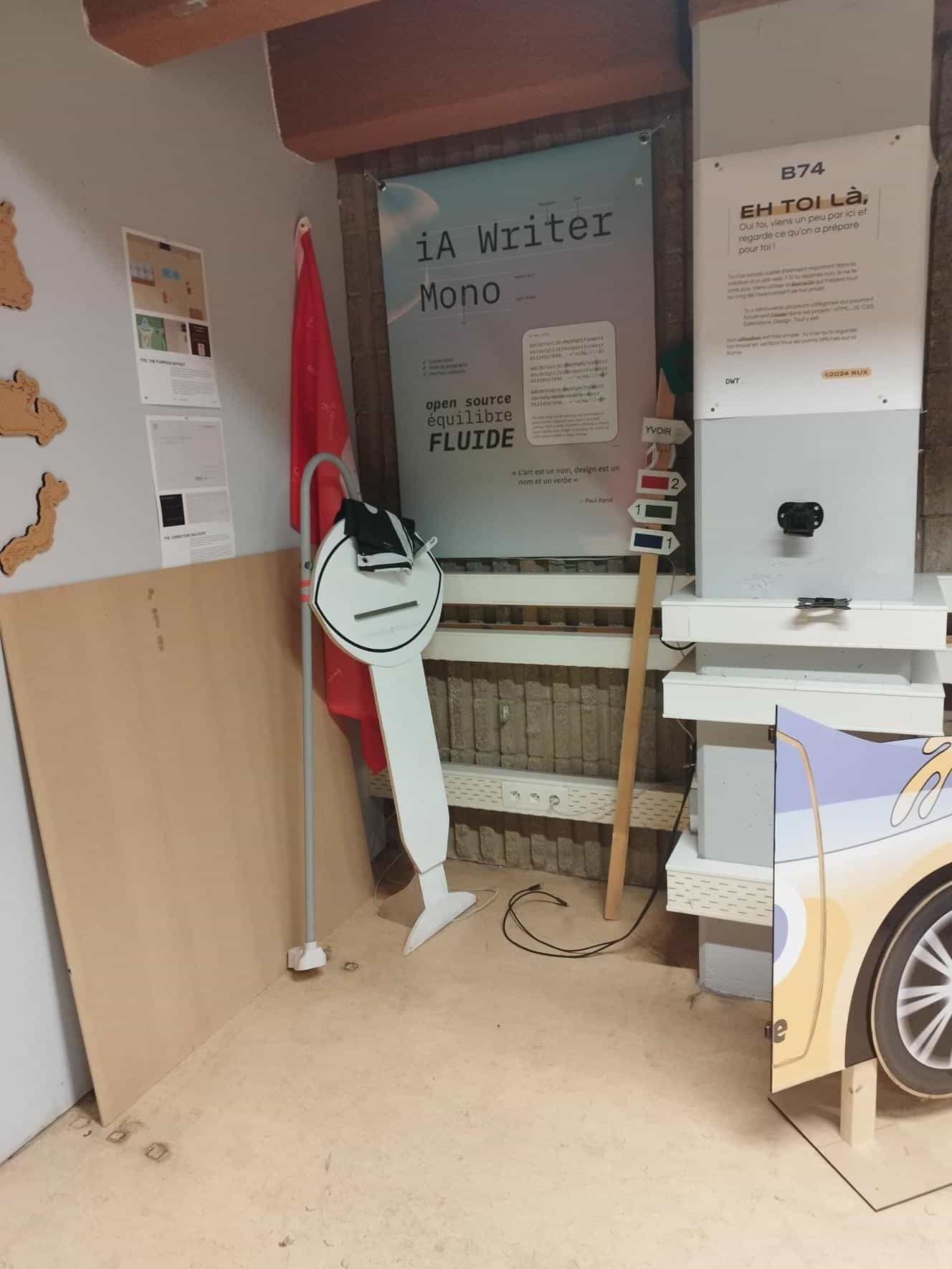 On trouvait que les affiches aux portes avec le numéro des classes dessus n’étaient pas très jolies. C’est juste une feuille avec un numéro. On a pensé qu’on pourrait les styliser un peu. Un autre problème est la gestion des câbles dans la classe. Il y en a beaucoup qui traînent. Enfin, les travaux affichés dans les classes sont des vieux travaux. On trouve qu’on pourrait les changer et mettre des plus récents à la place.